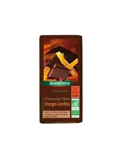 Chocolat noir aux oranges confites bio Bonneterre, sans lécithines. Chocolat Noir aux Oranges Confites 100G Bio Pour votre santé, évitez de manger trop gras, trop sucré, trop salé. Bonneterre