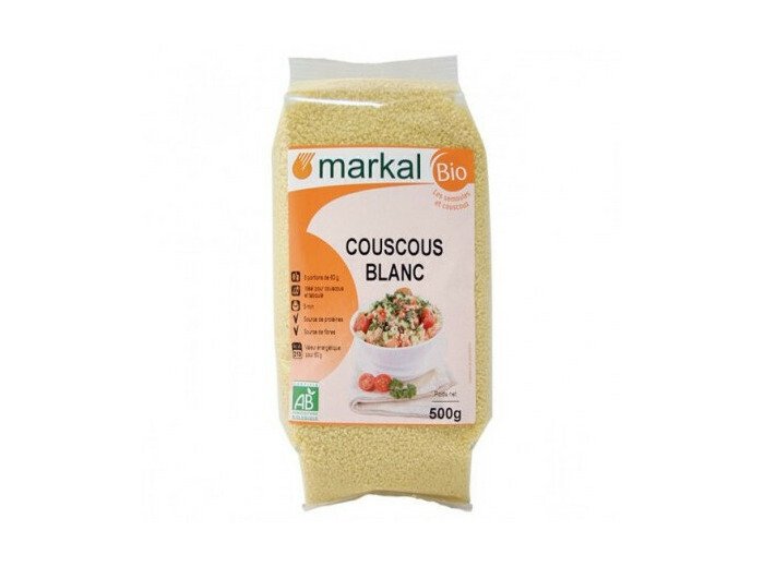 Le Couscous blanc de Markal est obtenu à partir de semoule de blé dur blanche et d'eau. Les grains obtenus sont ensuite précuits et séchés. La couleur du couscous blanc varie du jaune clair au blanc crème.