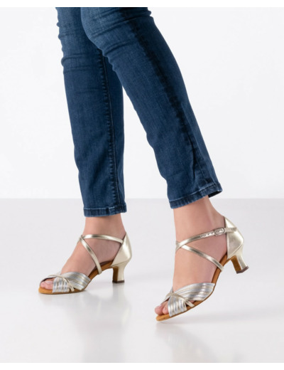 Les chaussures de danse de salon Noel de la marque Anna Kern sont dotées d'une découpe sur le devant ornées d'un tressage or et argenté. Sophistiquées et chic à la fois, ces chaussures de danse vous emmèneront sur la piste de danse pour les fêtes de fin d'années. L'avant filigrané assure une bonne tenue au pied, le talon à été pensé pour amortir les chocs. La semelle intermédiaire apporte du confort. La fine bride croisée à la cheville peut être ajustée individuellement sous le pied.