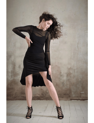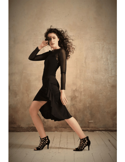 La taille du mannequin est de 173 cm (5'7"), la taille 67 cm (26,4"), le buste 86 cm (34'4"), les hanches 95 cm (37,4"). Elle porte la taille S.