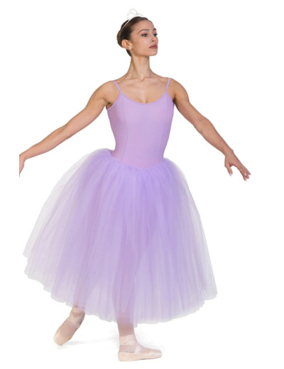 Tutu long avec 6 épaisseurs pour suivre gracieusement le mouvement. Bretelles fines découpes « princesse » sur le devant, entièrement doublé quatre couches de tulle souple Longueur du tulle environ mi-mollet Lycra : 80 % polyamide / 20 % élasthanne Doublure : 90 % polyamide 10 % élasthanne Tulle souple 100 % acrylique