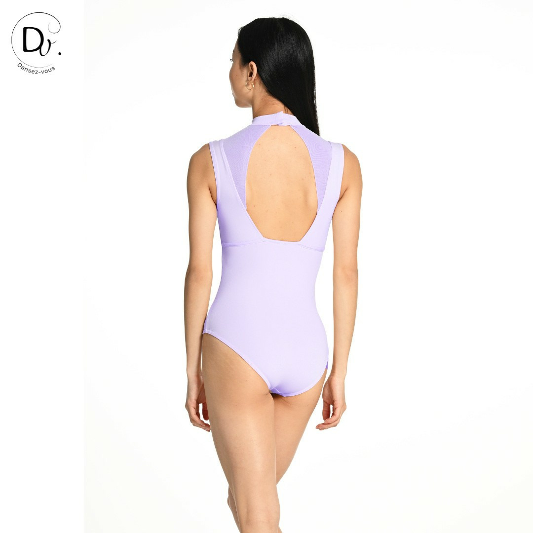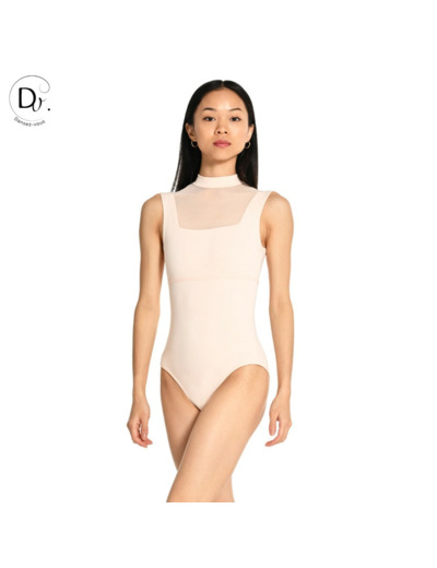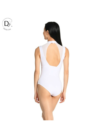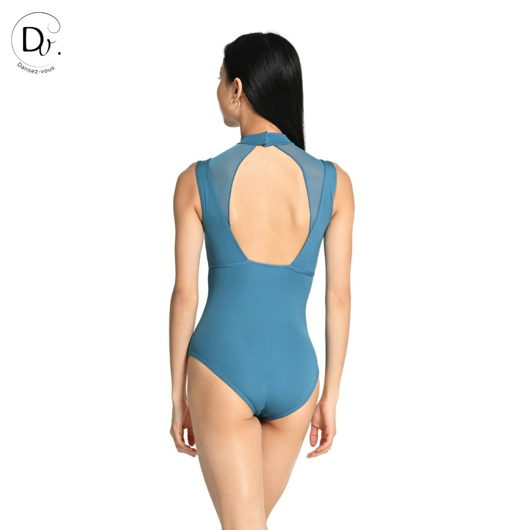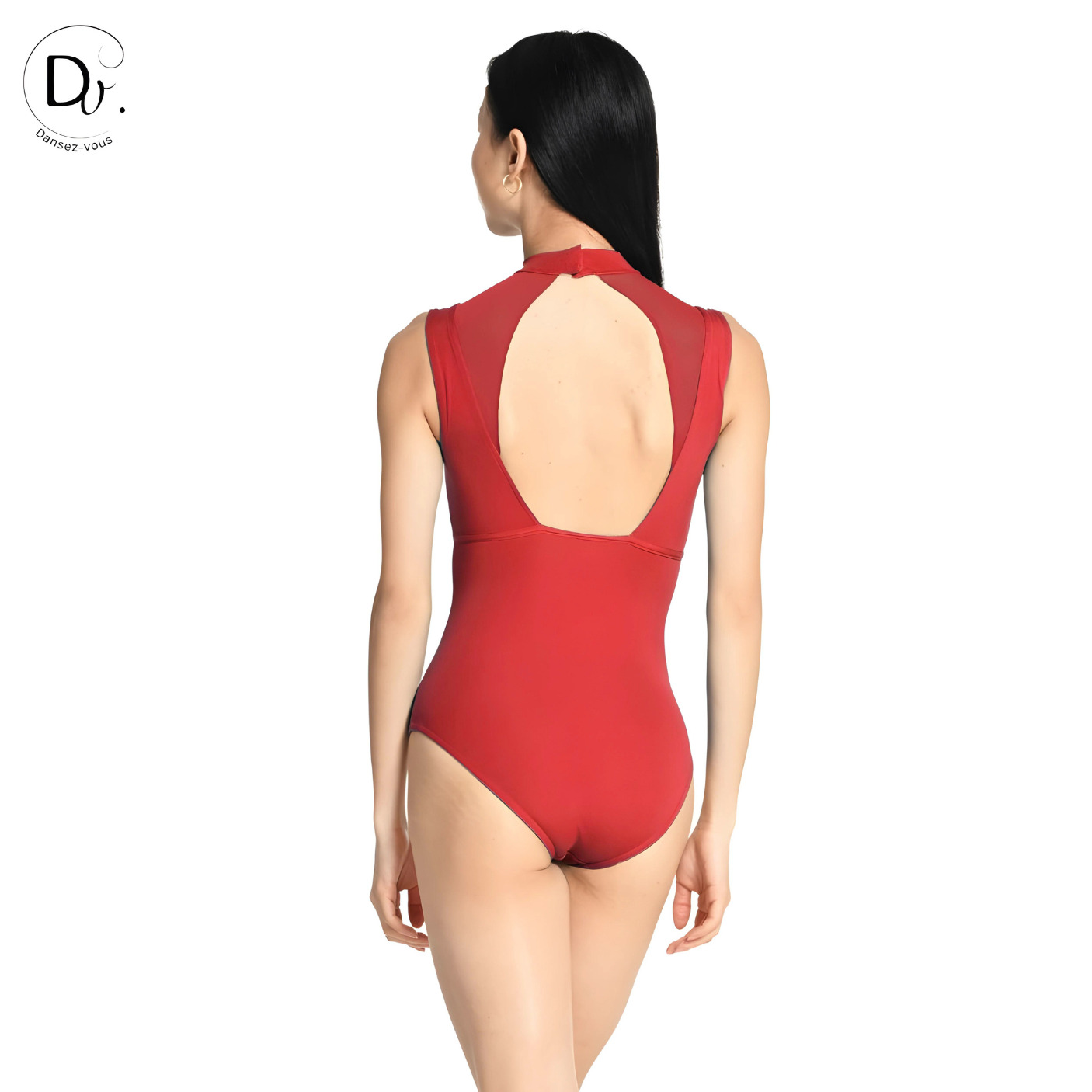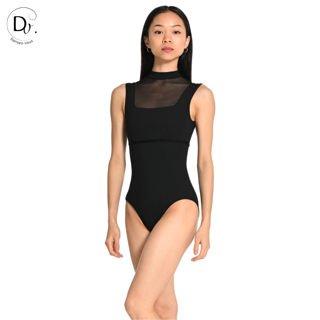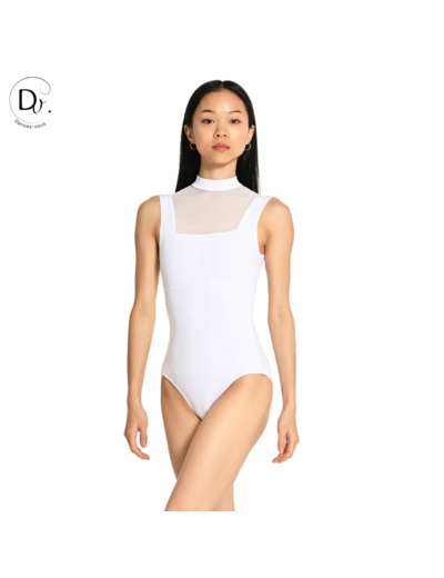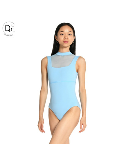 Ce justaucorps de danse est caractérisé par une encolure carrée, emblématique de la marque Dansez-vous. Il présente un empiècement en résille à l'avant et un dos échancré en forme de goutte d'eau, ajoutant élégance et prestance à la danseuse. Le col montant accentue la tenue de la tête, conférant style et sophistication. Avec des bretelles larges, un empiècement en résille, une doublure intérieure et composé de 90% de microfibre et 10% d'élasthanne, il allie confort et esthétique.
