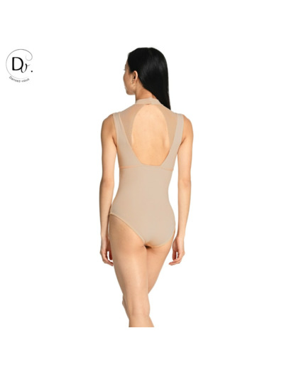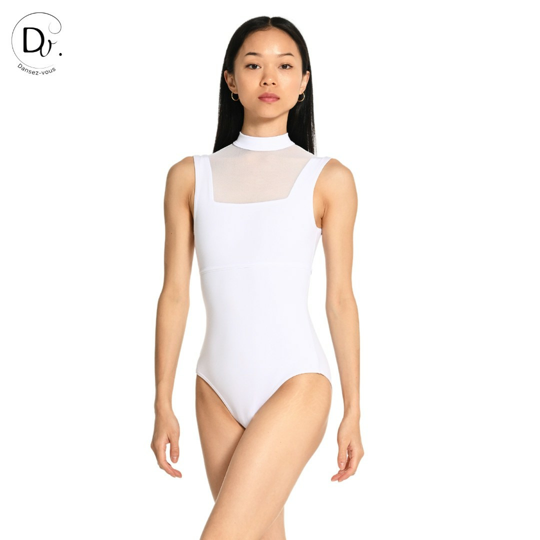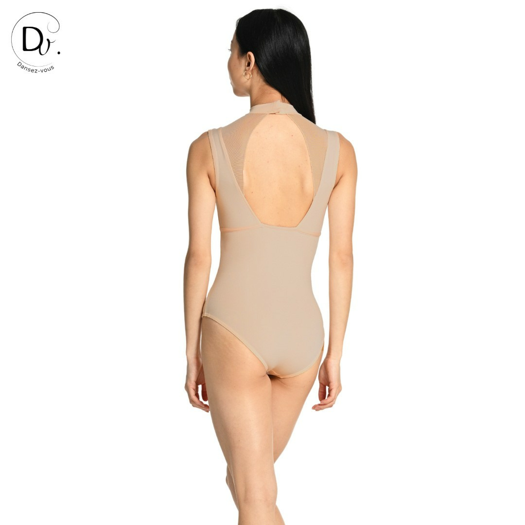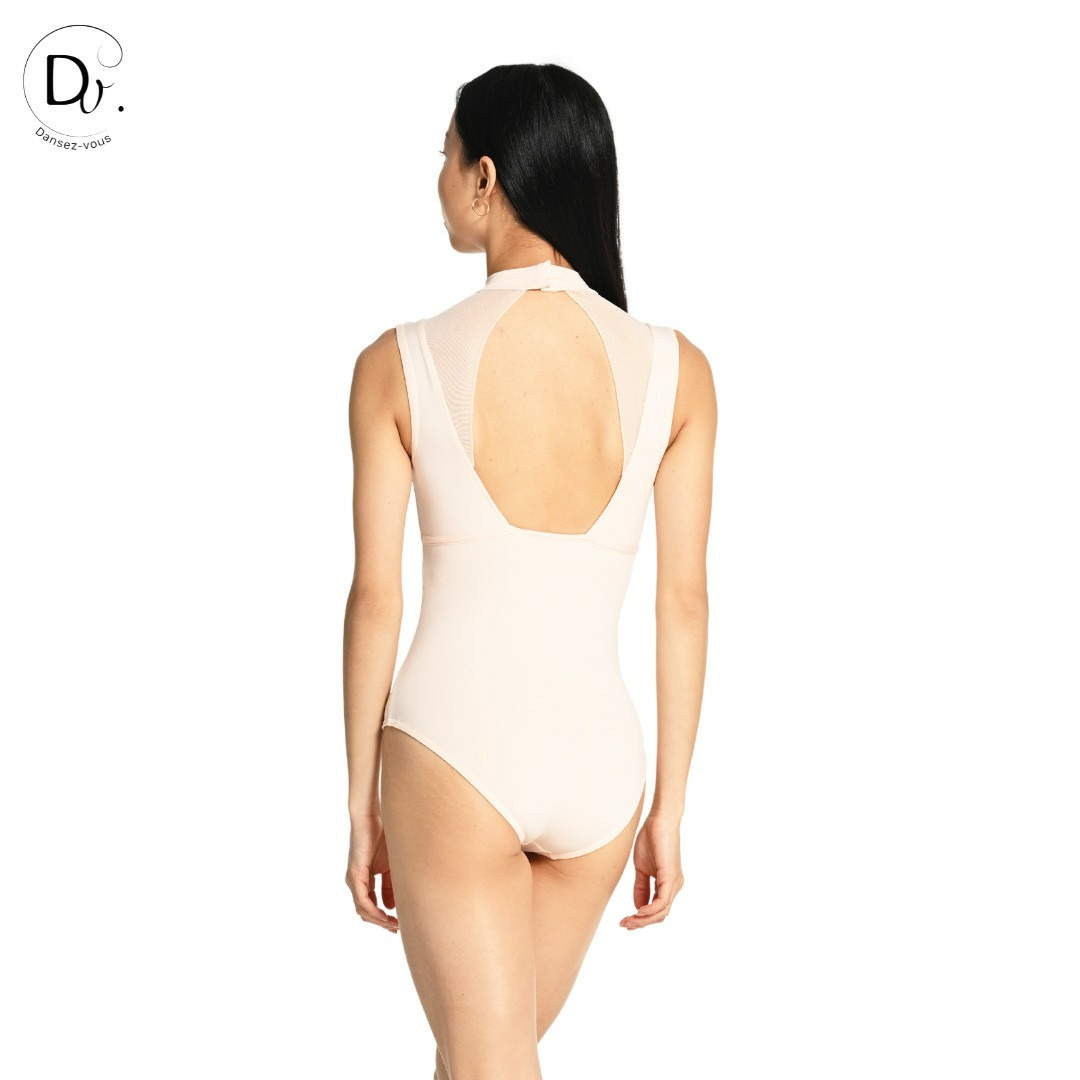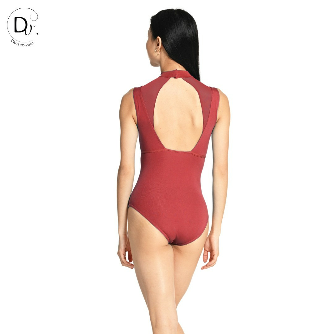 Ce justaucorps de danse est caractérisé par une encolure carrée, emblématique de la marque Dansez-vous. Il présente un empiècement en résille à l'avant et un dos échancré en forme de goutte d'eau, ajoutant élégance et prestance à la danseuse. Le col montant accentue la tenue de la tête, conférant style et sophistication. Avec des bretelles larges, un empiècement en résille, une doublure intérieure et composé de 90% de microfibre et 10% d'élasthanne, il allie confort et esthétique.