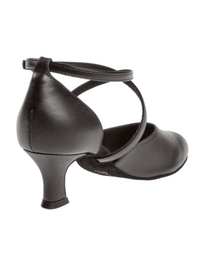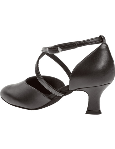 La chaussure en cuir noir véritable vous assure un bon maintien grâce à sa double bride croisée sur le cou-de-pied.