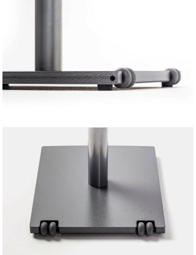 Le modèle Avant fait partie de la gamme de barres mobiles professionnelles Dinamica Ballet. Nous proposons deux types de socles en acier : un socle avec deux roulettes pesant 20 kg et un socle plat sans roulettes, pesant 10 kg. Le socle avec roulettes en caoutchouc haute densité offre une grande stabilité et permet de déplacer la barre sans effort en l'inclinant à 45 degrés. Le socle plat est conçu pour être déplacé sans toucher le sol. Les deux socles sont équipés de patins en PVC pour protéger le sol, même en bois. Pour des déplacements fréquents ou en tournée, nous recommandons le modèle à roulettes. Pour des déplacements occasionnels ou avec l'aide d'une autre personne, le socle plat est plus adapté. Le poids total avec les socles à roulettes et la barre en bois de 2 mètres est de 48 kg, tandis que l'ensemble avec les socles sans roulettes pèse 32 kg.