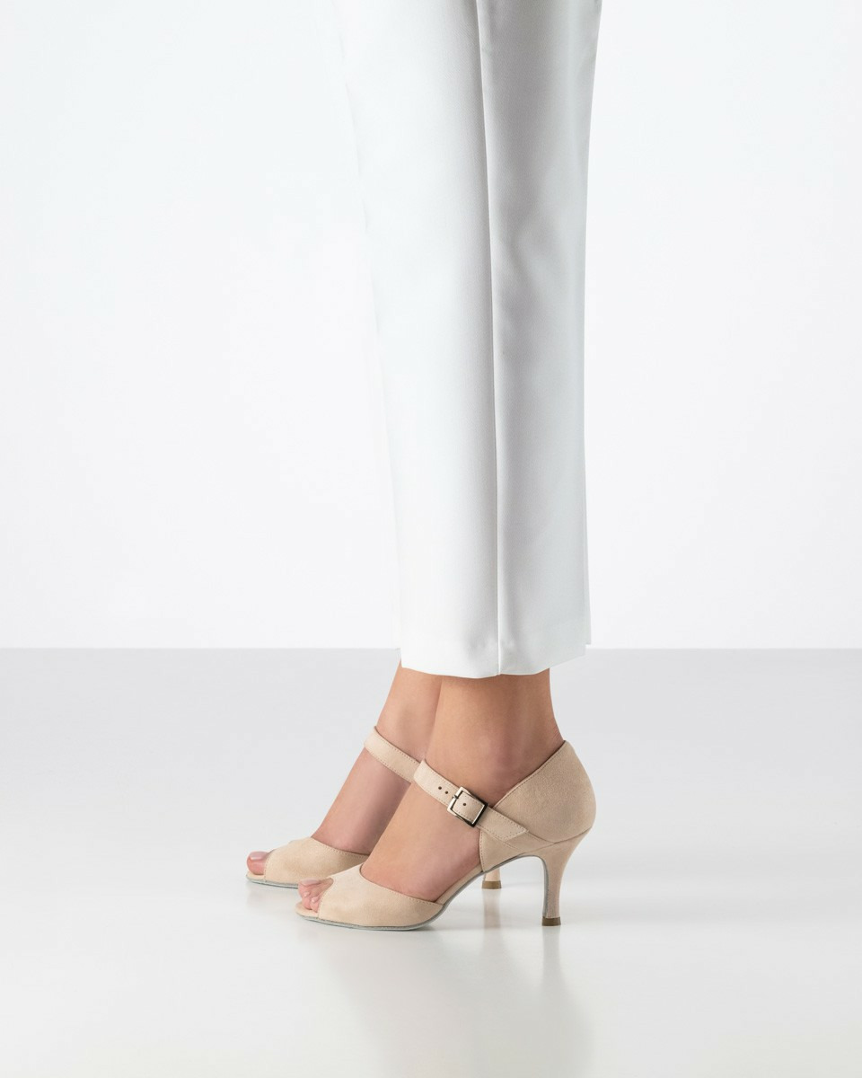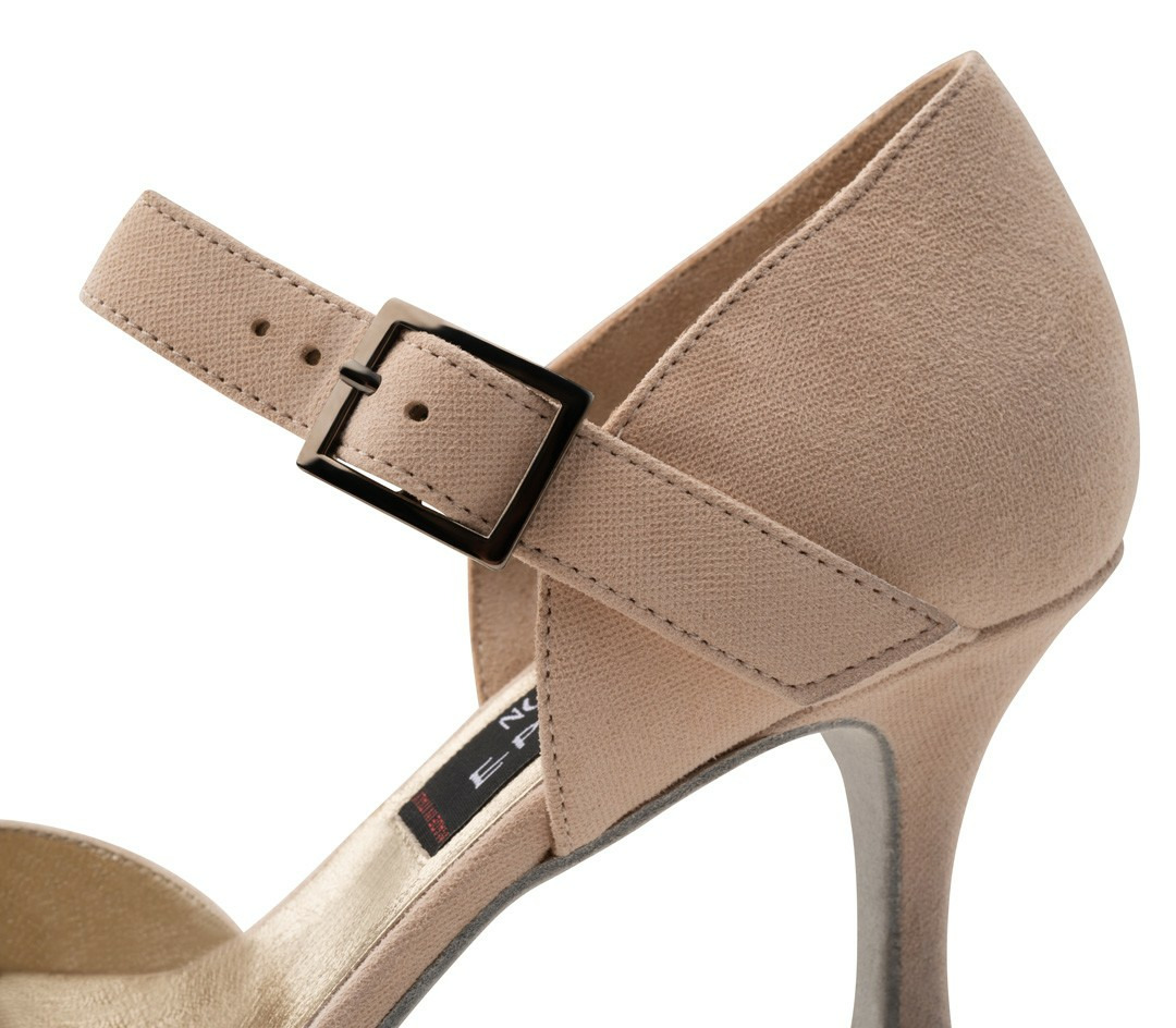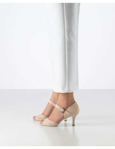 Les chaussures de danse de salon Berenice de la marque Nueva epoca avec une large surface de marque pour maintenir la stabilité. La découpe sur le devant laisse paraitre les orteils. La petite bride à l'allure large maintien correctement la cheville. Elles prônent confort et élégance.