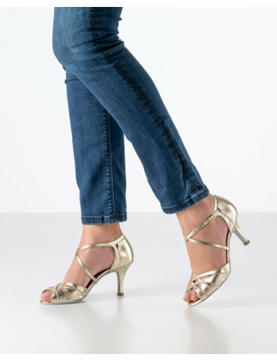 Les chaussures de danse de salon Cleo de la marque Nueva epoca sont dotées d'une découpe sur le devant ornées d'empiècements en résille ainsi que de brides entrelacées pour maintenir la cheville. Elles apporteront une apparence glamour et chic. Le talon à été pensé pour amortir les chocs. La semelle intermédiaire apporte du confort. La sangle de cheville croisée est réglables individuellement sous le pied.