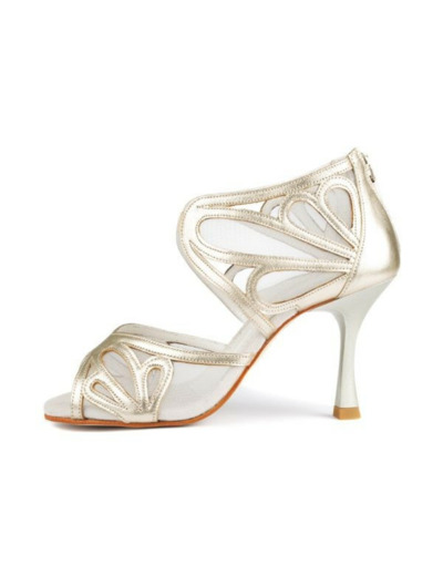 Ces chaussures en satin pailletés et détails en résilles vous donneront un style élégant pour danser. Pour stabiliser votre pied, elle possède un élastique sur le cou-de-pied et une fermeture à l'arrière du talon de type ZIP. Talon de 8,5cm idéal pour le heel dance.