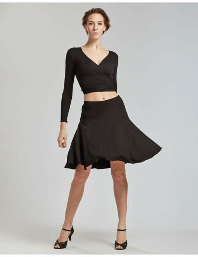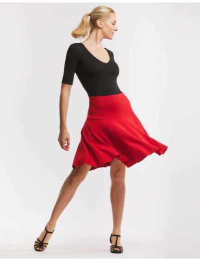Jupe salsa idéale pour toutes les formes de danse latine. Elle est conçue pour épouser les hanches afin d'assurer un maintien optimal. La partie inférieure de la jupe s'évase pour accentuer les mouvements caractéristiques de la danse latine. Cette jupe a une longueur genou de 55 cm. - Viscose/élasthanne : offre confort, un toucher doux et naturel, ainsi qu'une excellente capacité d'absorption. - Coupe spécialement pensée pour valoriser les mouvements de la danse latine. - Longueur genou : 55 cm. - Facilement lavable en machine, elle présente une excellente tenue et une conservation des couleurs au fil du temps.