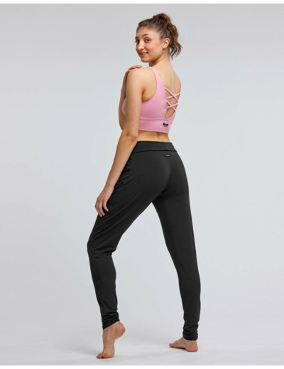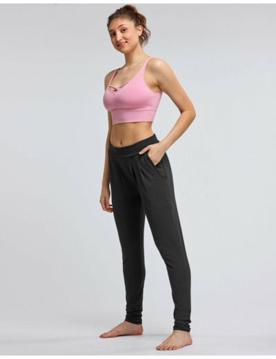 Le pantalon à pinces avec une ceinture rabattable VIVANT, d'un confort extrême, est idéal pour les cours de yoga, pilates et fitness. Il peut aussi être porté en danse sur un body. Sa large ceinture rabattable assure un maintien optimal. Son volume généreux au niveau des cuisses crée un effet plissé raffiné, tandis que le bas des jambes resserré offre un aspect froncé élégant. Cette coupe garantit une liberté de mouvement totale tout en affichant une grande élégance. Avec ses poches latérales, le pantalon VIVANT est parfaitement dans l'air du temps et s'intègre aisément dans un style streetwear urbain. - Viscose/élasthanne : matière très résistante offrant confort, douceur au toucher et absorption optimale - 8 % d'élasthanne pour un confort accru - Ceinture facilement rabattable"