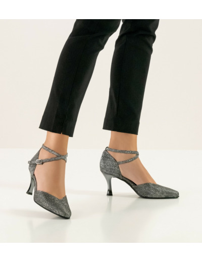 La chaussure Abby de chez Werner Kern donnera esthétisme et confort pour vos pieds. Elle complétera idéalement votre tenue de danse pour vos soirées grâce à sa matière brocart et son coloris noir/argent. La splendide coupe en V à l'avant du pied et le talon laqué font de cette chaussure un modèle élégant. Les brides croisées à la cheville assurent le maintien.