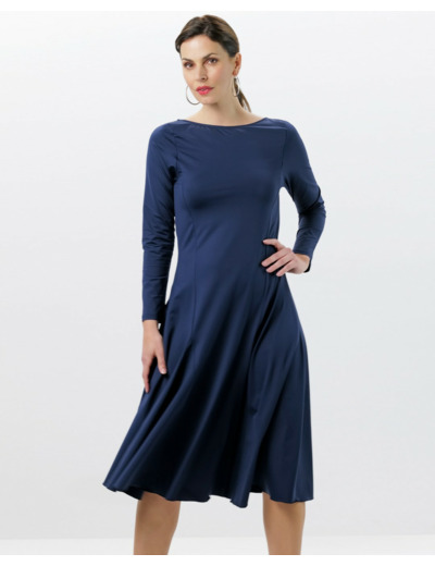 La robe de danse Alya – bleu élégant allie harmonieusement style classique, confort exceptionnel et liberté de mouvement. Conçue pour les danseuses qui recherchent une tenue à la fois esthétique et fonctionnelle, cette robe offre une silhouette raffinée grâce à sa taille marquée, son encolure bateau discrète et ses manches ajustées.