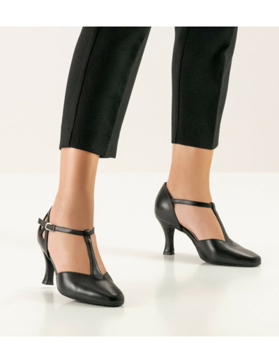 Andrea65 - Chaussures de danse fermées pour femme en cuir noir avec brides en forme de T - Werner Kern
