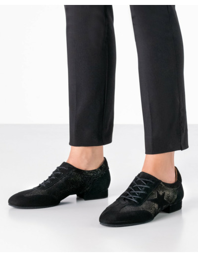 La chaussure de danse Ariana – Werner Kern allie élégance intemporelle et raffinement moderne. Son mélange sophistiqué de daim noir classique et de velours brillant crée un contraste subtil, rehaussé par de délicats accents scintillants et un motif étoilé particulièrement féminin. Chaque détail est pensé pour sublimer la silhouette tout en offrant une sensation de légèreté incomparable.