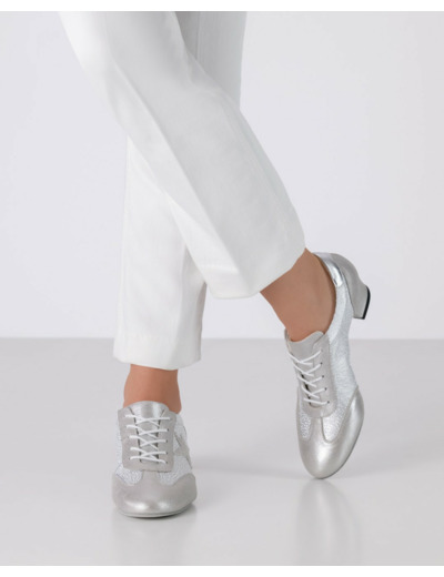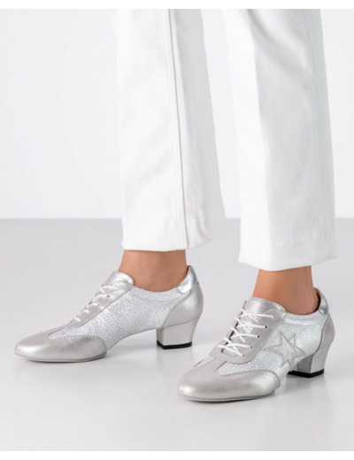 La chaussure de danse Ariana – Werner Kern marie avec finesse sportivité et élégance. Conçue en velours brillant associé à un cuir imprimé argenté, elle offre un style moderne et affirmé. Son motif étoilé discret apporte une touche de caractère tout en conservant une allure raffinée.