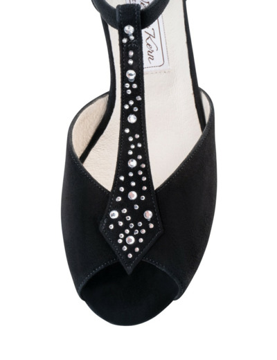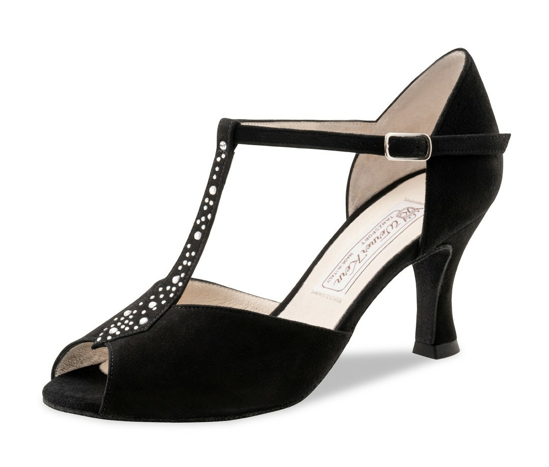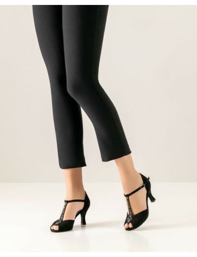Claudia65 de Werner Kern est une chaussure de danse à talons de 6,5 cm ornée de strass sur la bride salomé. Alliant féminité et confort, elle est parfaite pour les danses de salon. La petite ouverture pour les orteils et la boucle de talon réglable individuellement assurent un maintien optimal. Fabriquées en chevreau velours noir de haute qualité, ces chaussures offrent un équilibre parfait entre style et fonctionnalité pour vos performances sur la piste de danse. Que vous dansiez le tango, la valse ou le cha-cha-cha, Claudia65 vous accompagnera avec élégance et assurance. Profitez de chaque mouvement avec ces chaussures qui allient le glamour à la performance, pour des danses inoubliables.