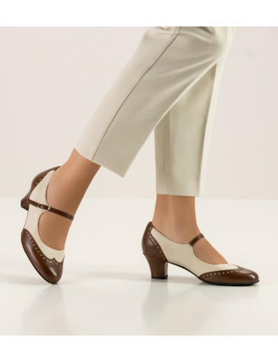Cette chaussure de danse fermée de la marque Werner Kern vous assure une épouse de votre pied grâce à son cuir brun et beige. Son attache réglable maintiendra votre pied et sa semelle en daim vous aidera à contrôler vos mouvements pour danser le swing ou le boogie. Son talon à la technogie d'absorption des chocs protégera vos articulations.