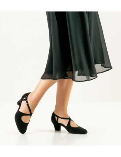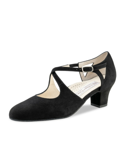 Faites sensation sur la piste de danse avec les chaussures Gala de Werner Kern. En daim noir de haute qualité, ces chaussures offrent un maintien et une stabilité exceptionnels grâce à leur double lanière croisée et leur talon de 4,5 cm. Conçues pour les danses de salon, ces chaussures sont également idéales pour les danses swing. Leur semelle en cuir suède assure une adhérence parfaite sur toutes les surfaces de danse, tandis que leur boucle en argent sans nickel ajoute une touche d'élégance. Fabriquées avec soin en Italie, les chaussures Gala allient style, confort et durabilité pour vous permettre de danser avec confiance toute la nuit.