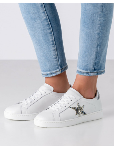 Le sneaker de danse Heaven – Werner Kern séduit par son style urbain affirmé et son confort exceptionnel. Fabriqué en cuir nappa blanc haut de gamme, il se distingue par un détail étoilé asymétrique en brocart argenté et un contrefort brillant qui apporte une touche contemporaine et élégante. L’ensemble crée un look moderne, dynamique et parfaitement adapté à la danse.