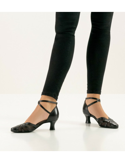 Linda - Chaussures De Danse Fermées En Cuir Noir Et Résille Ou Argent- Werner Kern