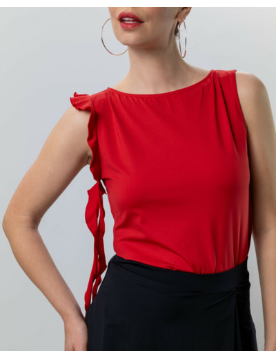 Ce top rouge s’associe parfaitement avec les jupes de danse Viva ou Vana, permettant de composer des tenues élégantes et harmonieuses pour les cours, les soirées dansantes ou les démonstrations. Le modèle est également disponible en noir classique, pour un style plus discret mais tout aussi raffiné.