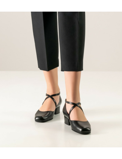 Marion35 - Chaussures de danse femme en cuir noir à talons carré de 3,5 cm - Werner Kern