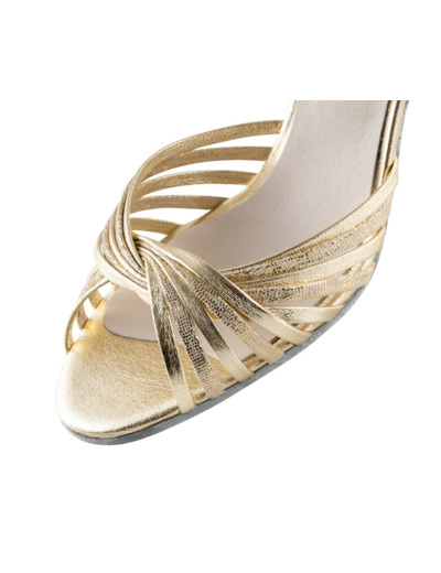 Explorez l'élégance sophistiquée avec les chaussures ouvertes Mary de Werner Kern. Fabriquées en cuir nappa et daim couleur or/platine, ces chaussures offrent un talon de 6,5 cm avec boucle réglable pour un maintien parfait. Leur design entremêlé sur l'avant du pied apporte une touche de raffinement à votre tenue de danse. Avec leur semelle en daim de haute qualité et leur doublure en cuir respirant, elles offrent un confort exceptionnel pour chaque mouvement. Dotées d'une boucle sans nickel et d'un ajustement parfait, ces chaussures sont un choix idéal pour les danseuses exigeantes à la recherche d'un équilibre parfait entre style et performance.