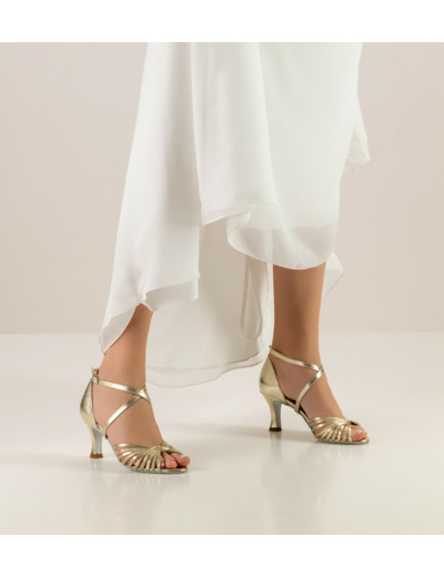 Mary - Chaussures de danse en cuir doré et boucle réglable couleur platin/beige - Werner Kern
