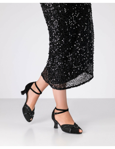 La chaussure de danse Nellie – Werner Kern associe élégance discrète, confort durable et lignes modernes. Conçue en daim noir doux avec un sous-couche en vernis brillant, elle séduit par son jeu subtil de textures qui accroche délicatement la lumière à chaque mouvement.
