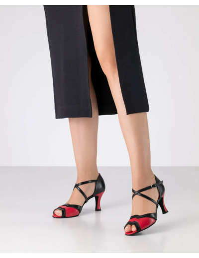 Avec la chaussure de danse Portia, vous profitez d’un mélange parfait de style, de maintien et de confort sur la piste. Conçue en cuir nappa noir et rouge de haute qualité, Portia affiche une bichromie élégante et expressive qui met en valeur la forme du pied et souligne la ligne raffinée du modèle.