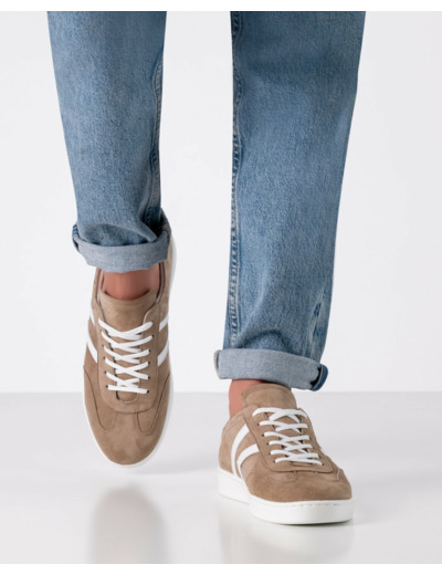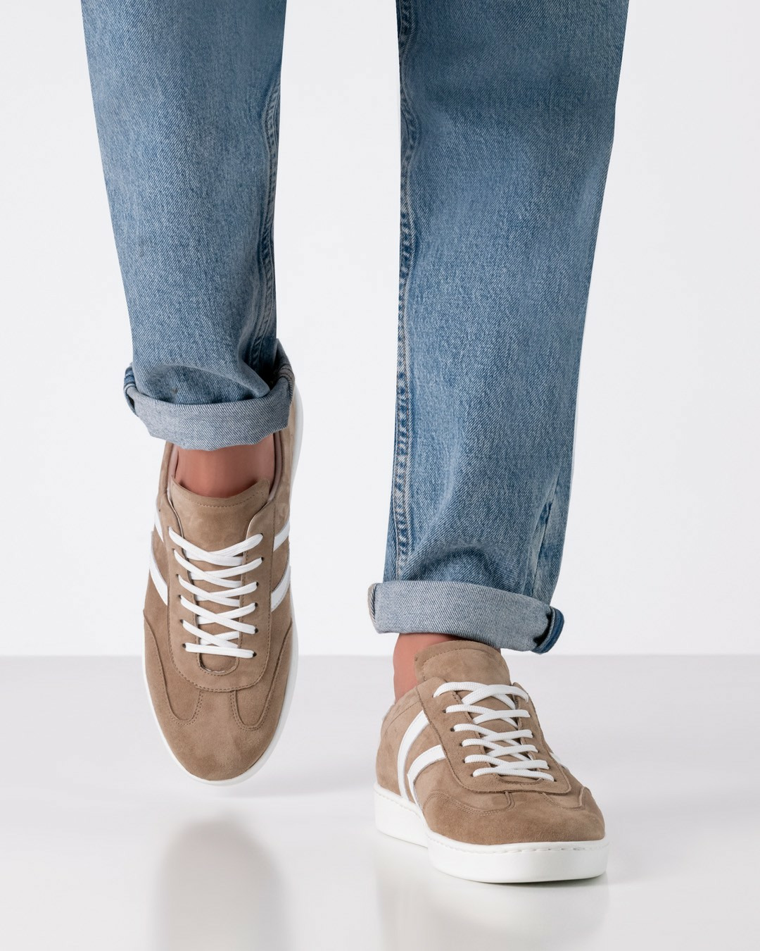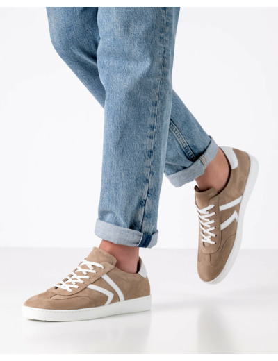 Le daim beige doux est sublimé par des détails en cuir nappa blanc, créant un design épuré, élégant et facile à porter. Légère au pied et visuellement subtile, la Salerno offre une présence chic sans être tape-à-l’œil.