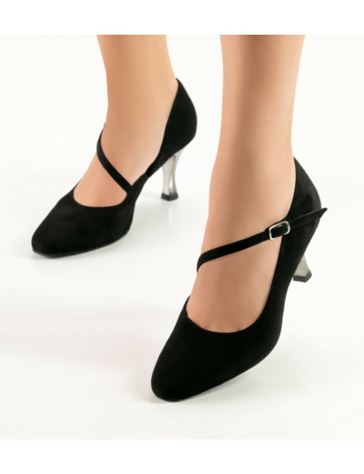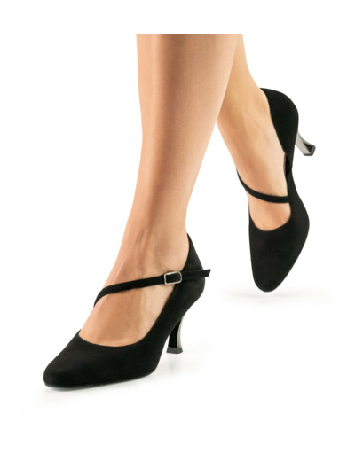 Sarah - Chaussures de danse en daim noir à talons effet bois - Werner Kern