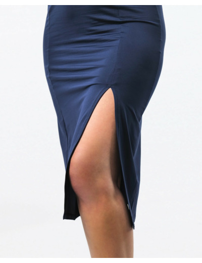 La robe de danse Taya en bleu profond allie élégance raffinée et liberté de mouvement exceptionnelle. Sa coupe fluide et féminine met immédiatement la silhouette en valeur : une encolure en V élégante, des manches ¾ sophistiquées et une fente latérale dynamique qui accompagne chaque mouvement avec grâce. Que ce soit pour le tango, la kizomba, la bachata ou toute danse expressive, cette robe assure une allure remarquable sur la piste.