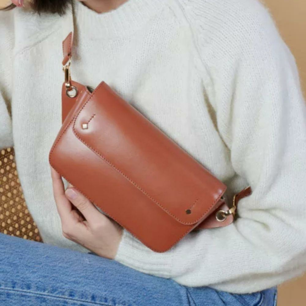 Le sac banane Emilie en cuir recyclé allie style et durabilité pour la saison printemps/été.