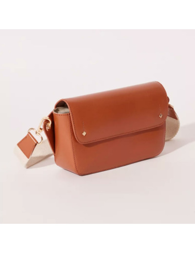 Sac banane à rabat en cuir recyclé avec lanière en coton.