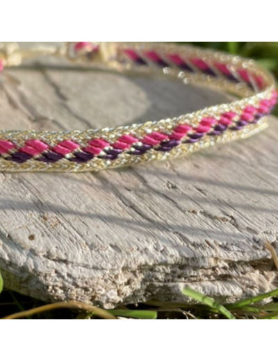 Élégant et raffiné, ce bracelet est confectionné à la main avec des fils de soie aux nuances d’or rose, d’or jaune et de turquoise. Son tissage artisanal est sublimé par des perles en Argent 925 plaqué or et des perles de cristal, apportant finesse et éclat.