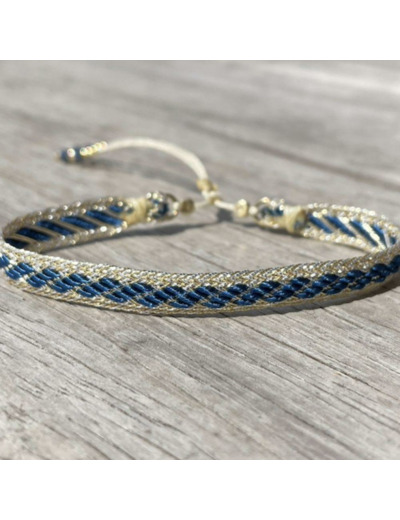 Élégant et raffiné, ce bracelet est confectionné à la main avec des fils de soie aux nuances d’or rose, d’or jaune et de turquoise. Son tissage artisanal est sublimé par des perles en Argent 925 plaqué or et des perles de cristal, apportant finesse et éclat.
