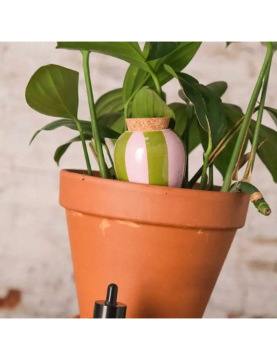 Facile à utiliser, il suffit de la planter dans la terre et de la remplir d’eau, elle régulera ensuite l'écoulement naturellement selon le besoin de chaque plante.