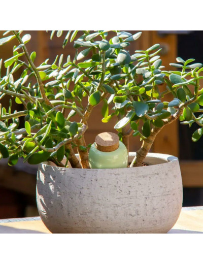 Facile à utiliser, il suffit de la planter dans la terre et de la remplir d’eau, elle régulera ensuite l'écoulement naturellement selon le besoin de chaque plante.