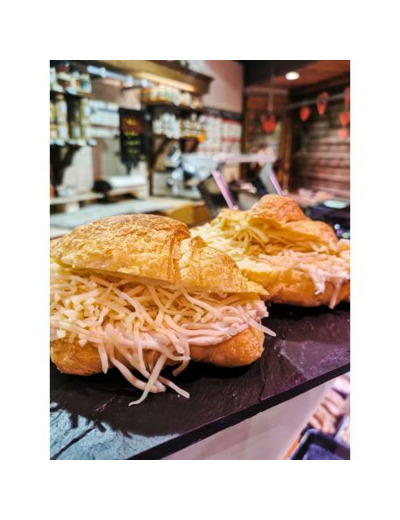 Croissants au beurre avec 1/2 tranche de jambon, du gruyère et de la béchamel