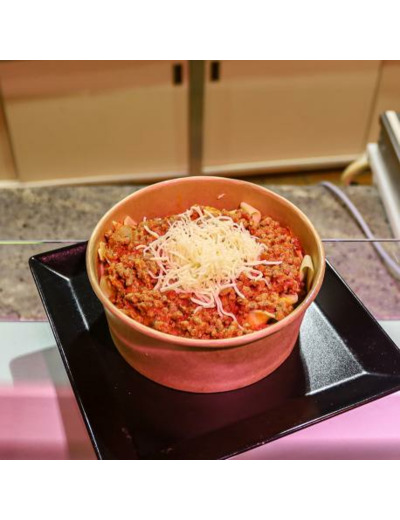 Savourez nos tagliatelles bolognaise faite maison composée de viande de bœuf, une sauce tomate onctueuse, des tagliatelles et gruyère.