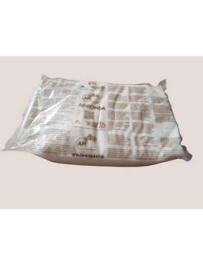 C’est une pâte à 90% de Matière sèche très fine, stable qui ne durcit pas et ne coule pas. Pas de déchets, très économique et peut s’utiliser en toute saison pour éviter une famine ou un but stratégique en nourrissement précoce d’hivernage, au printemps si trop froid pour nourrir au sirop.