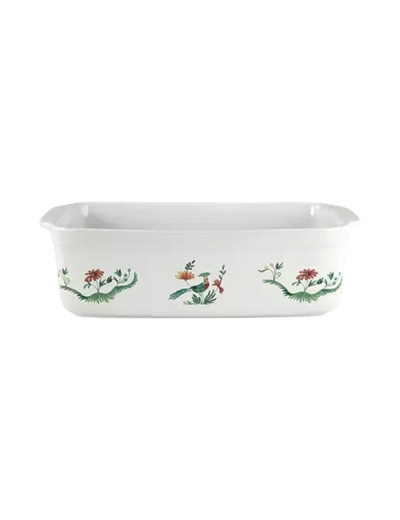 Décor historique et intemporel, Oiseaux de Paradis a traversé les générations et continue à faire référence en matière d’art de la table. Le motif appliqué sur la forme Coquille est bordé par un délicat filet bleu peint à la main.