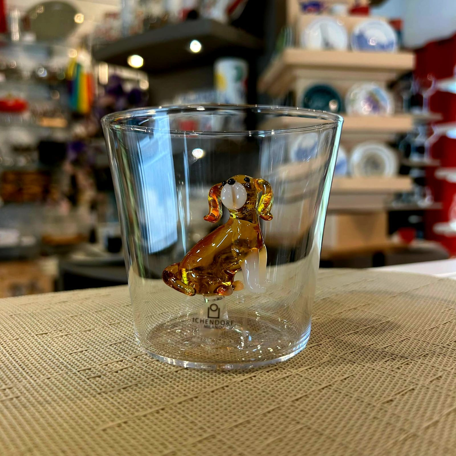 Un compagnon fidèle sur votre table. Découvrez le verre Golden Retriever de la collection Dogs, imaginée par Alessandra Baldereschi pour Ichendorf Milano. Ce verre soufflé bouche renferme une délicate sculpture de chien au pelage marron clair, rendant hommage à l’un des compagnons les plus aimés et attachants : le golden retriever.