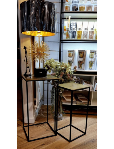 Ces deux sellettes carrées en métal, vous permettront de moduler votre espace en fonction de vos besoins avec esthétisme. La plus petite mesure 30x64 cm, la grande mesure 38x74 cm.