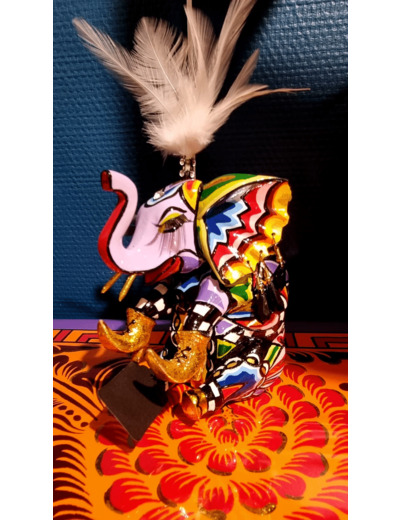 l'éléphant "Jumbo (S)" est un véritable Tom's Drag. L'animal symbolique du bonheur et d'une longue vie porte un costume fantastique plein d'ornements exotiques et ludiques et brille aux couleurs de l'arc-en-ciel. Avec sa coiffe décorative en plumes, il est décoré comme un défilé de carnaval. Quel monde merveilleux!