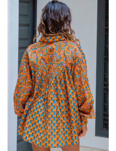 Ses manches longues légèrement bouffantes et son col en V subtilement ouvert créent une silhouette bohème irrésistible.