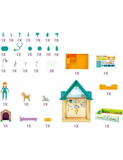 superbe clinique vétérinaire avec tous les accessoires pour des histoires passionnantes avec les animaux