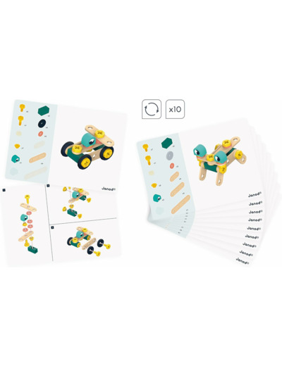 A vos outils les amis ! Ce baril de bricolage de 50 pièces offre aux enfants dès 3 ans la possibilité de créer une foule de constructions, toutes plus folles les unes que les autres ! Ce jouet de bricolage est idéal pour stimuler la motricité et l'imagination des amateurs de véhicules, robots, engins et autres animaux rigolos. Dans ce baril d'accessoires de bricolage, vous trouverez : 10 plaquettes, 4 roues, 4 rondelles, 2 yeux, 5 blocs en bois, 5 boulons, 8 inserts, 10 vis, 1 tournevis et 1 clé. Besoin d'inspiration ? Pas de panique, 10 cartes modèles sont incluses pour donner l'élan créatif nécessaire aux tout-petits ! L'autre atout de ce jeu de construction, c'est son format pratique à transporter : bien pensé pour bricoler où la créativité mène les enfants. Mais ce n'est pas tout ! Les vis sont équipées de crans pour toujours mieux imiter les vraies et donner une nouvelle dimension au jeu. Qu'ils aiment inventer, bricoler, assembler ou démonter, les enfants vont adorer utiliser leurs propres outils pour bricoler comme les adultes. C'est idéal pour développer la dextérité, la minutie et pour apprendre à résoudre des problèmes, sur un établi ou … Sur la table du salon ! Ce baril de bricolage est composé de bois et de carton certifié FSC™. Il fait partie de notre collection de jouets d'imitation bricolage : Brico'Kids.