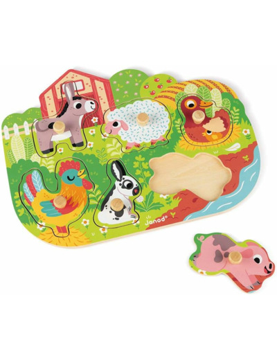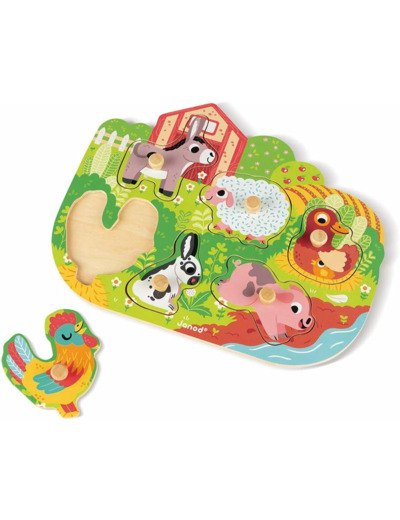 Avec ce joli puzzle en bois, les bébés à partir de 18 mois vont adorer replacer au bon endroit les petits animaux de la ferme. Ce puzzle d'éveil en bois a un joli plateau représentant la ferme. Les pièces à tenons facilitent la prise en main. Nombre de pièces : 6.